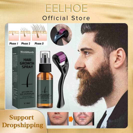 Beard Growth Spray Set for Men Nourishing Moisturizing Moustache Growth Enhancer Anti Hair Loss Care Serum with Beard Roller