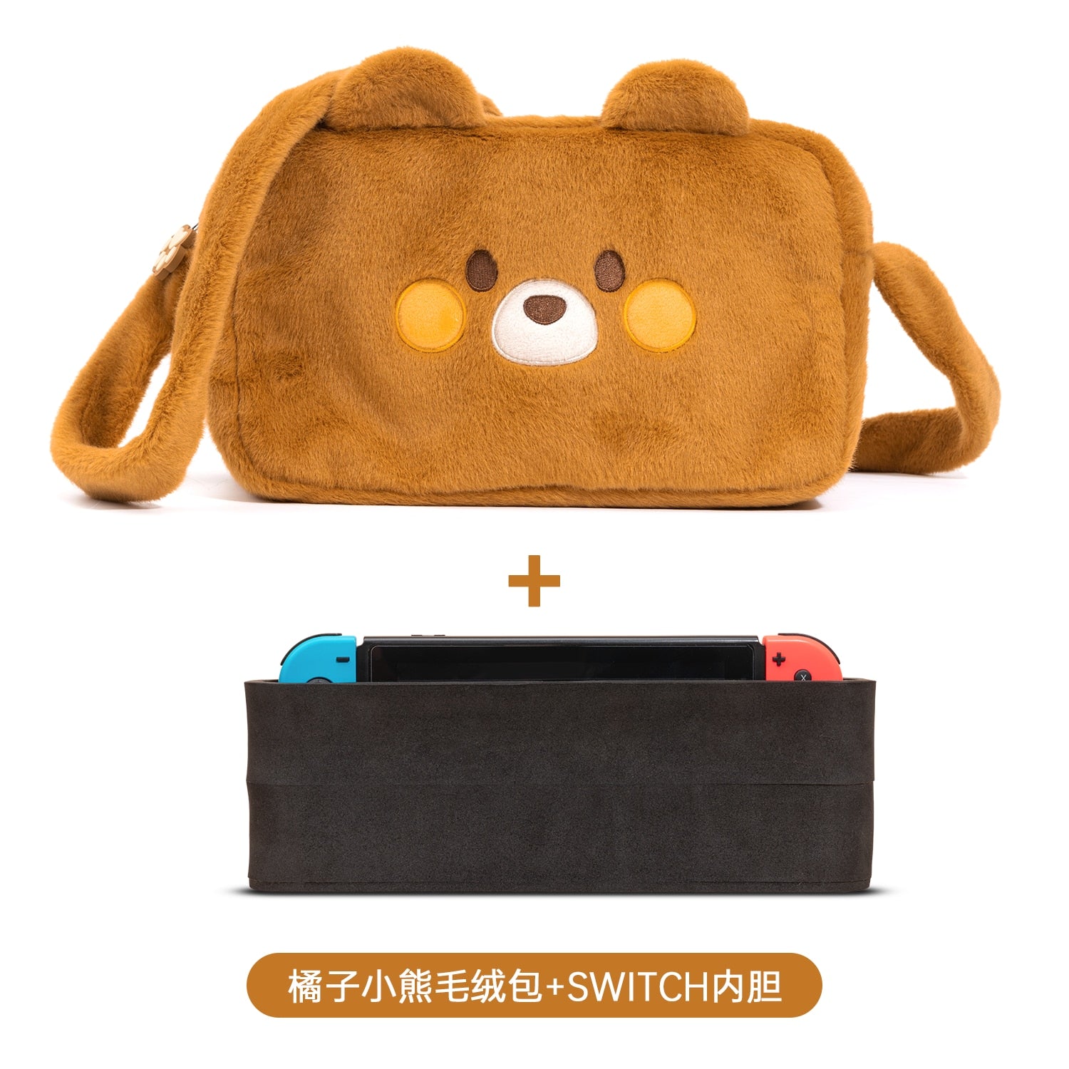 GeekShare Cute Girl Orange Bear Shoulder Bag Switch Storage Shoulder Plush Bag For NS OLED Accessories Messenger Large Capacity