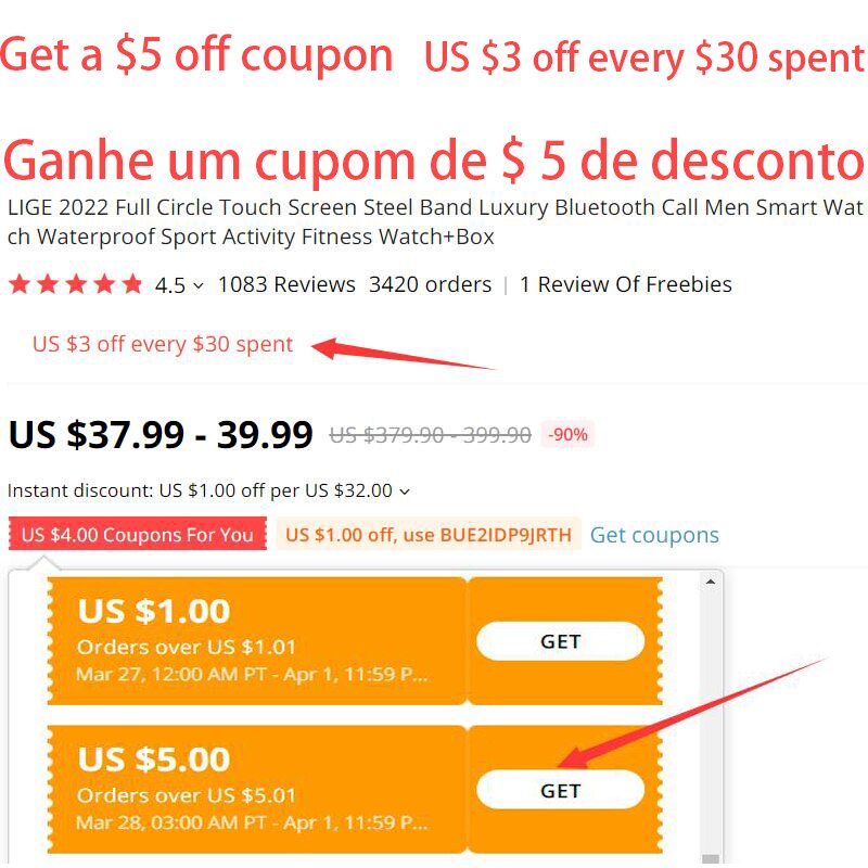 LIGE 2022 Full Circle Touch Screen Steel Band Luxury Bluetooth Call Men Smart Watch Waterproof Sport Activity Fitness Watch+Box