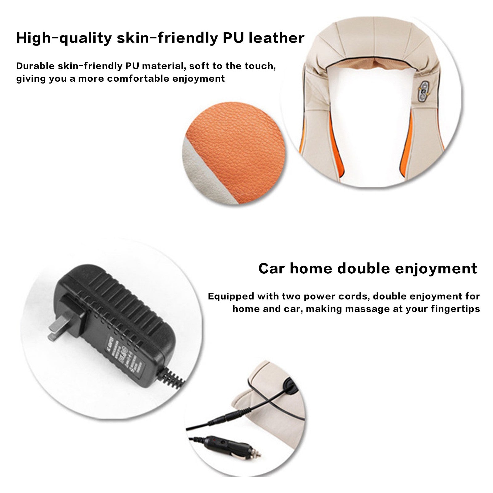 - Equipped with two power lines, car home double enjoyment, so that massage is more convenient