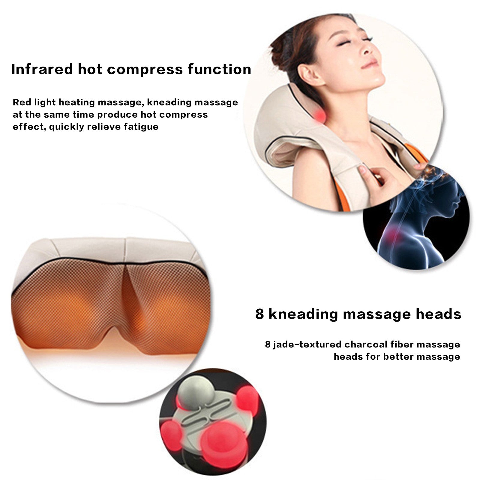 - Infrared heating massage, when kneading produce hot compress effect